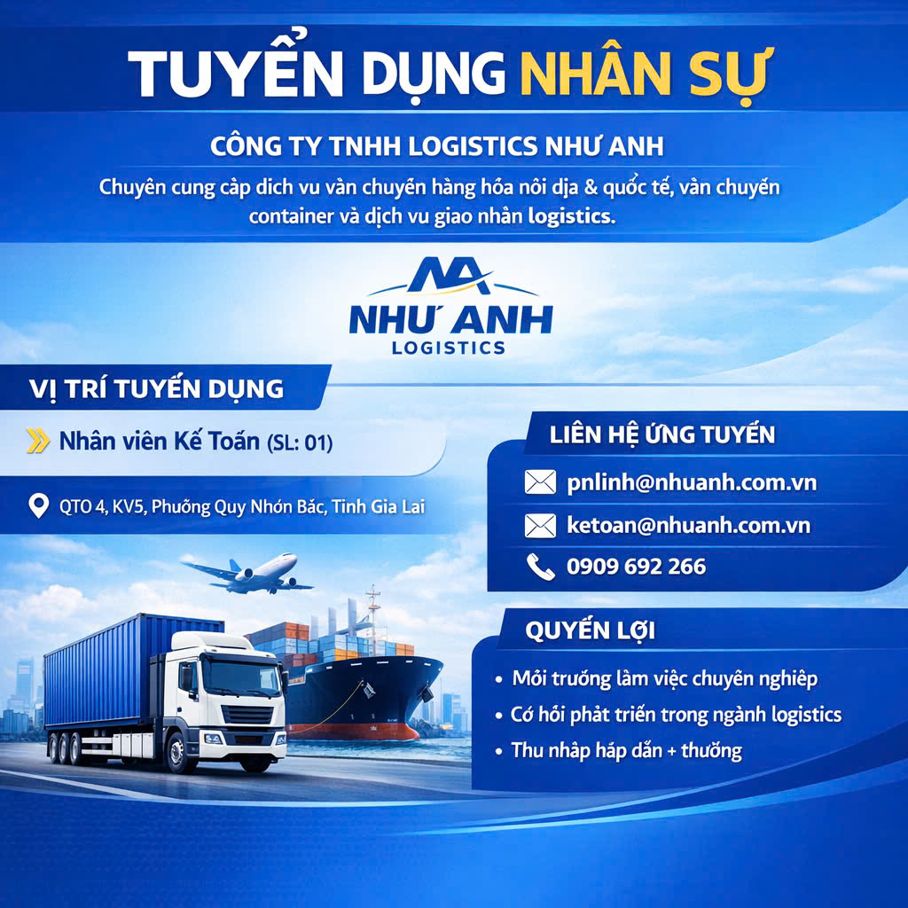 CÔNG TY TNHH LOGISTICS NHƯ ANH Nhằm mở rộng hoạt động kinh doanh, Công ty TNHH Logistics Như Anh đang